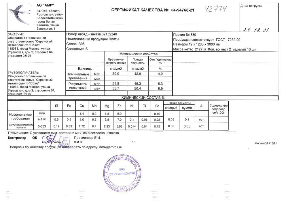 Алюминиевая плита сплошной плоский профиль толщиной более 10 мм. Изготовляют согласно ГОСТ 17232-99, с химическим составом по ГОСТ 4784-97. Отбор и подготовку проб для определения химического состава цветных металлов и сплавов, осуществляют по ГОСТ 24231-80. Плиты повышенного качества производится согласно ОСТ 1-92001-90.
