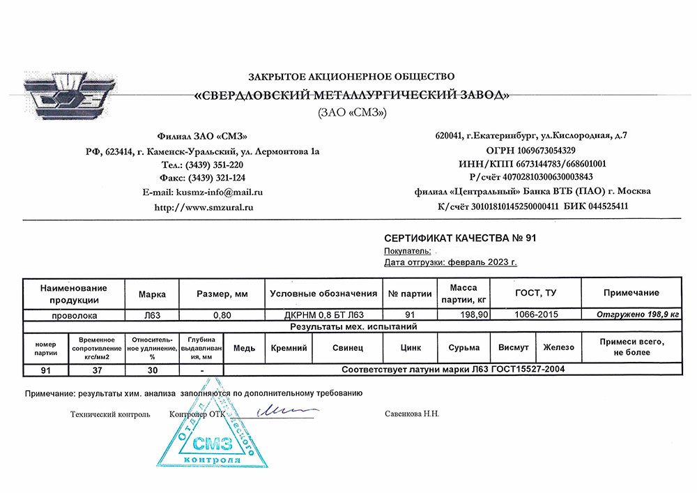 Латунная проволока изготавливается из сплавов латуни Л63, Л68, ЛС59-1 и Л80 при соблюдении нормативов ГОСТ 1066-90. В зависимости от качественных характеристик различают следующее виды латунной проволоки: сварочная по ГОСТ 16130-90, общего назначения по ГОСТ 1066-2015 и для холодной высадки по ГОСТ 12920-67.
